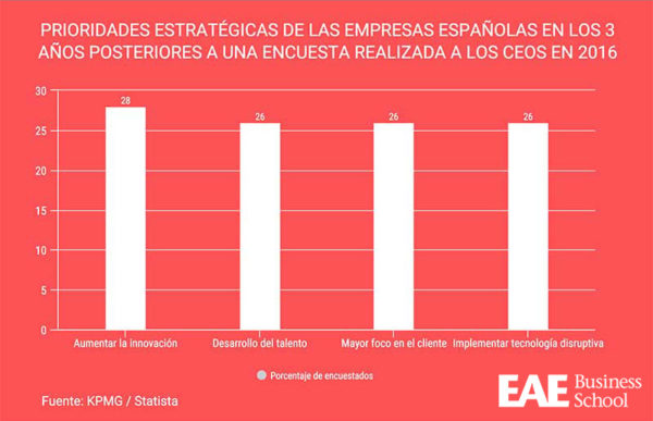 Según una encuesta realizada en 2016 por KPMG a los CEOs, el desarrollo del talento es una de las prioridades estratégicas para los 3 próximos años.
